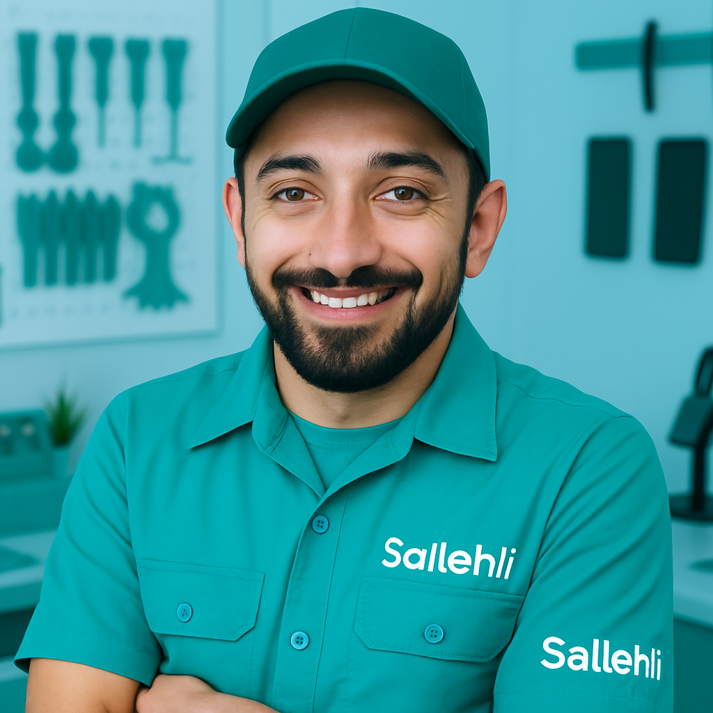 مع صلّحلي ما تحتاج تطلع، تدور، أو تتعب روحك! نستلم جهازك من باب بيتك، نصلّحه، ونرجعه لك كأنه يديد — وكل هذا وإنت مرتاح بمكانك.